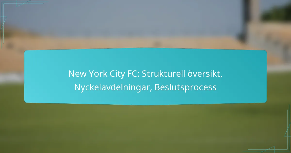 New York City FC (NYCFC) verkar inom en distinkt strukturell ram som kombinerar ägande, ledning och operativa strategier för att blomstra i Major League Soccer (MLS). Klubbens organisation betonar samarbete mellan viktiga avdelningar som marknadsföring, spelarutveckling och träning, som alla bidrar till dess framgång och engagemang i samhället. Beslutsfattande på NYCFC följer en strukturerad hierarki, vilket främjar anpassning till strategiska mål genom samarbetsinriktad input från olika intressenter.