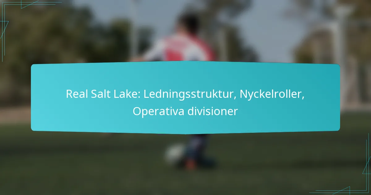 Real Salt Lakes ledningsstruktur består av olika nyckelroller som säkerställer att klubben fungerar smidigt. Dessa positioner inkluderar medlemmar av det verkställande teamet, huvudtränaren, teknisk personal och marknadsledarskap, som alla spelar avgörande roller i lagets framgång och engagemang i samhället.